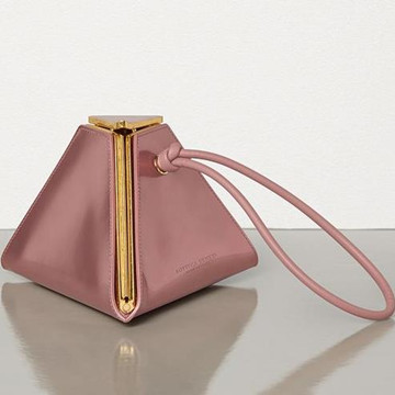介绍:金字塔形手拿包,配以皮革腕带
